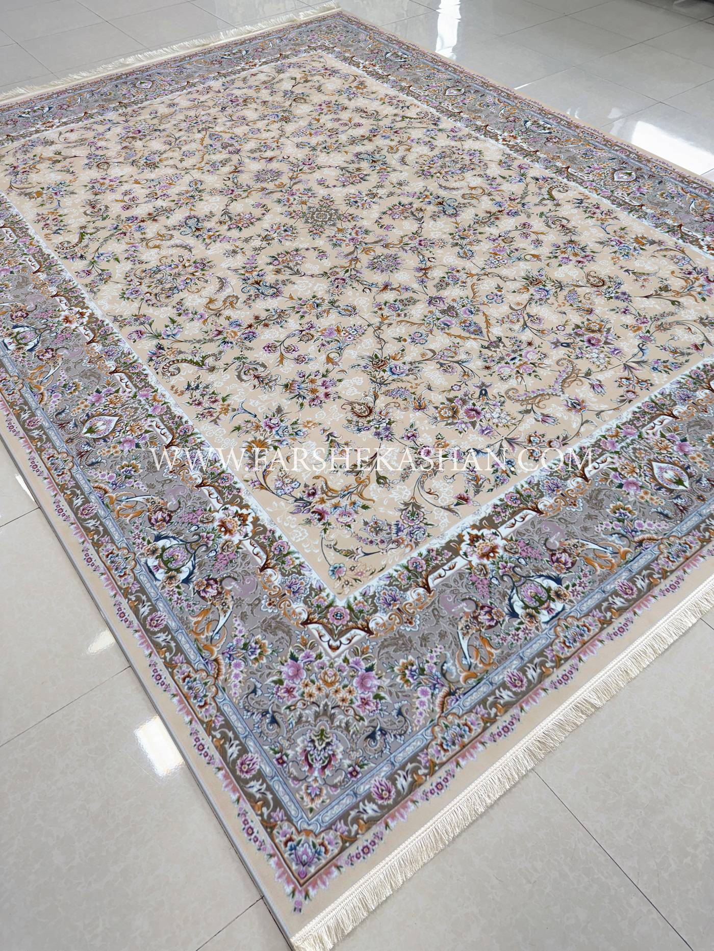فرش آریا با ۱۲۰۰ شانه و تراکم ۳۶۰۰ تولید میشود که نشاندهنده ظرافت و استحکام بالاست.