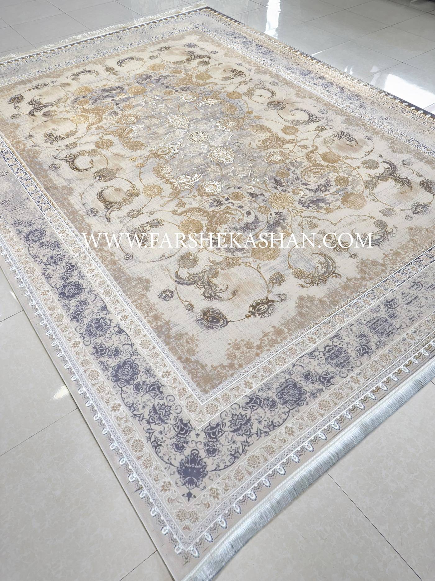 مشخصات بافت و جنس فرش فرش درخشش صدفی با بافت دقیق ۱۲۰۰ شانه و تراکم ۳۶۰۰ واقعی تولید شده که آن را در دسته فرشهای ظریف قرار می دهد. الیاف به کاررفته در این فرش از نوع ۱۰۰٪ اکریلیک هیت ست شده آلمانی است که علاوه بر مقاومت بسیار بالا در برابر کوبیدگی و حرارت، فاقد پرزدهی بوده و برای استفاده در منازل دارای کودک یا افراد حساس کاملاً مناسب است. ارتفاع خاب حدود 8 میلیمتر بوده و به دلیل تراکم بالا و فشردگی گرهها، سطح فرش حس لطافت مخملی و ایستایی چرمی دارد؛ بهگونه ای که هنگام راه رفتن روی آن، هم نرمی احساس میشود و هم استحکام زیر پا حفظ می گردد. نخهای به کاررفته در بافت، دارای خاصیت براقیت کنترل شده هستند که باعث می شود نقش فرش در نورهای مختلف تغییر طیف ظریفی داشته باشد و دقیقاً همان جلوه درخشش را که نام طرح اشاره دارد، ایجاد کند. حاشیه ها و ریشه های سفید، نقرهای، هماهنگی کاملی با زمینه ایجاد کرده و نشان دهنده دقت بالا در تولید است. این فرش دارای ضمانت کیفیت و خدمات پس از فروش بوده و در صورت نگهداری صحیح، عمر مفید آن بیش از 50 سال برآورد می شود.