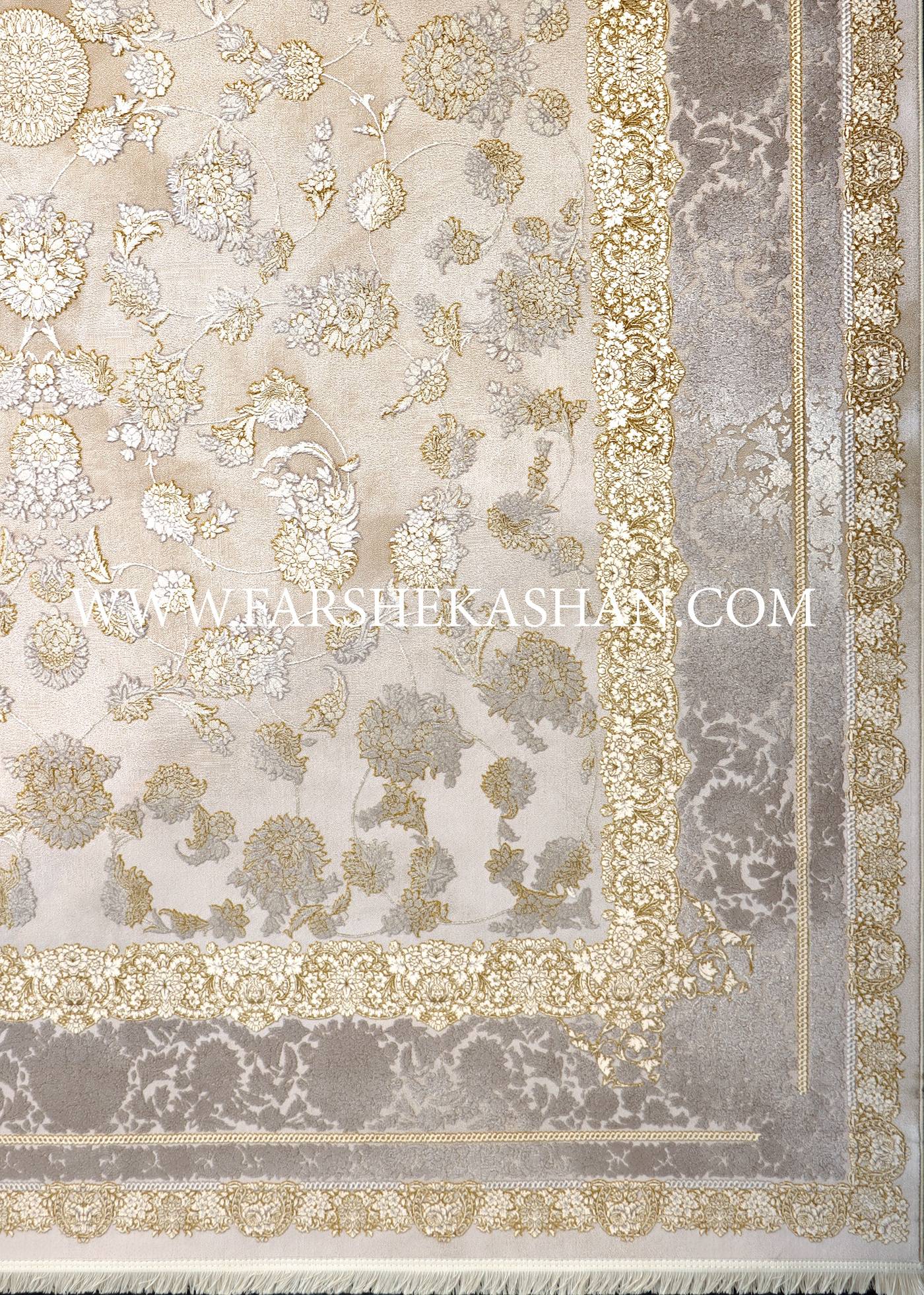 فرش طرح ۳۰۷۵ از مجموعه نفیس فرش کاشان، نمونه ای از طراحی مدرن با الهام از نقوش کلاسیک گل ریز ایرانی است. در نگاه نخست، ترکیب ظریف گل های پراکنده و زمینه سایه روشن آن، جلوه ای آرام و اشرافی به فضا میبخشد. این نقشه برخلاف طرحهای متقارن سنتی، با چینش آزاد گلها و موتیفهای اسلیمی مانند، احساس عمق و پویایی را در بافت فرش زنده میکند. رنگ بندی ملایم آن با طیفهای خاکی، کرم، نقرهای و طلایی، هارمونی دل نشینی میان گرما و خنثی ایجاد کرده است. طراحی حاشیه با قاب بندی ظریف و نقوش برجسته نما، به فرش جلوهای مجلل اما مدرن داده است. این طرح به خوبی نشان دهنده تلفیق اصالت ایرانی با رویکرد دکوراتیو امروزی است؛ جایی که فرش کاشان با تجربه و ذوق هنری خود توانسته نقشه ای خلق کند که هم در خانه های کلاسیک و هم در دکوراسیونهای امروزی به زیبایی بدرخشد.