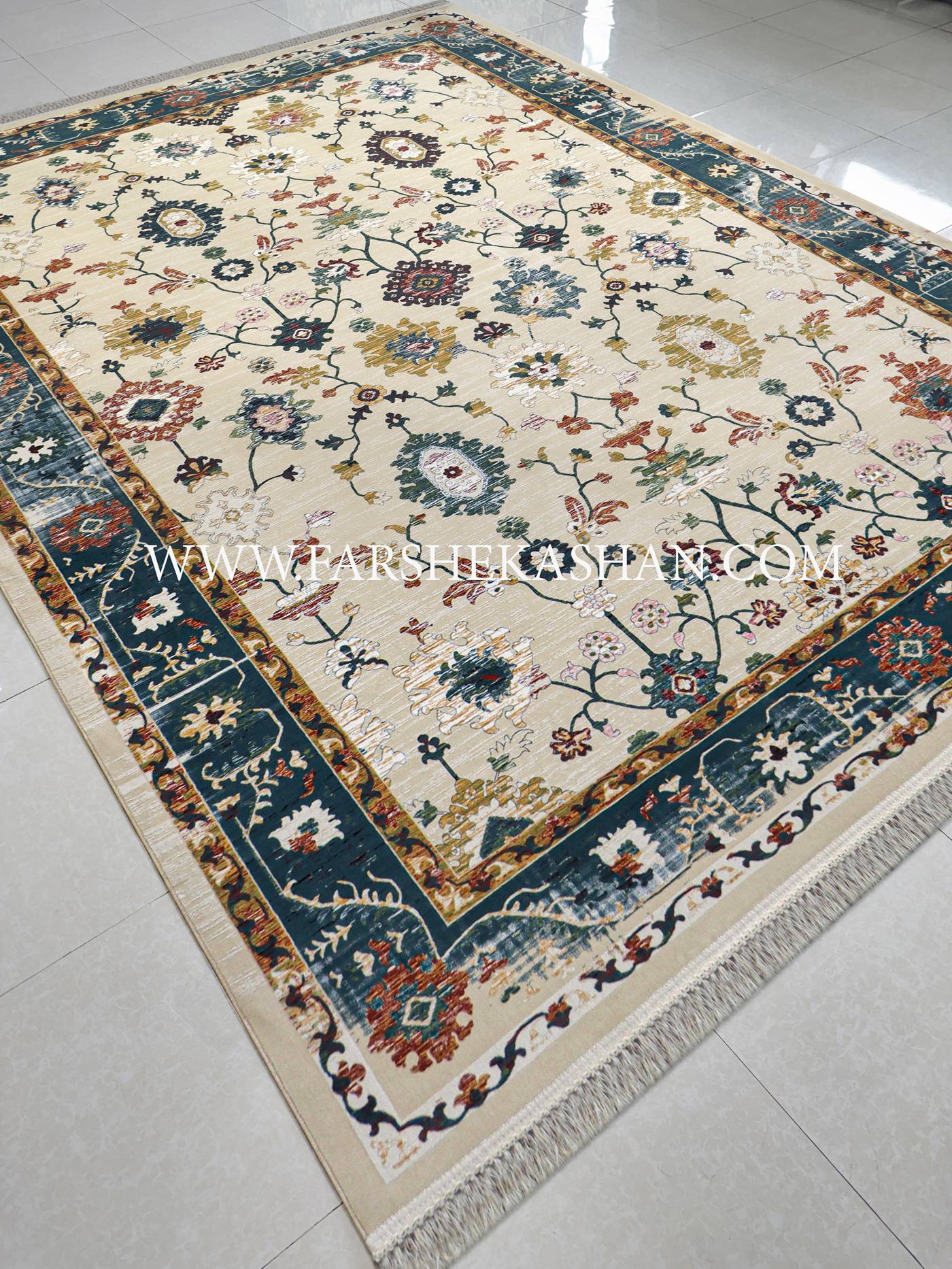 این فرش با ترکیب رنگ لاکی، کرم و صدفی در فضاهای کلاسیک، نئوکلاسیک و حتی مدرن جلوهای خاص دارد و به خوبی با مبلمان استیل، چوبی یا پارچه ای هماهنگ میشود.