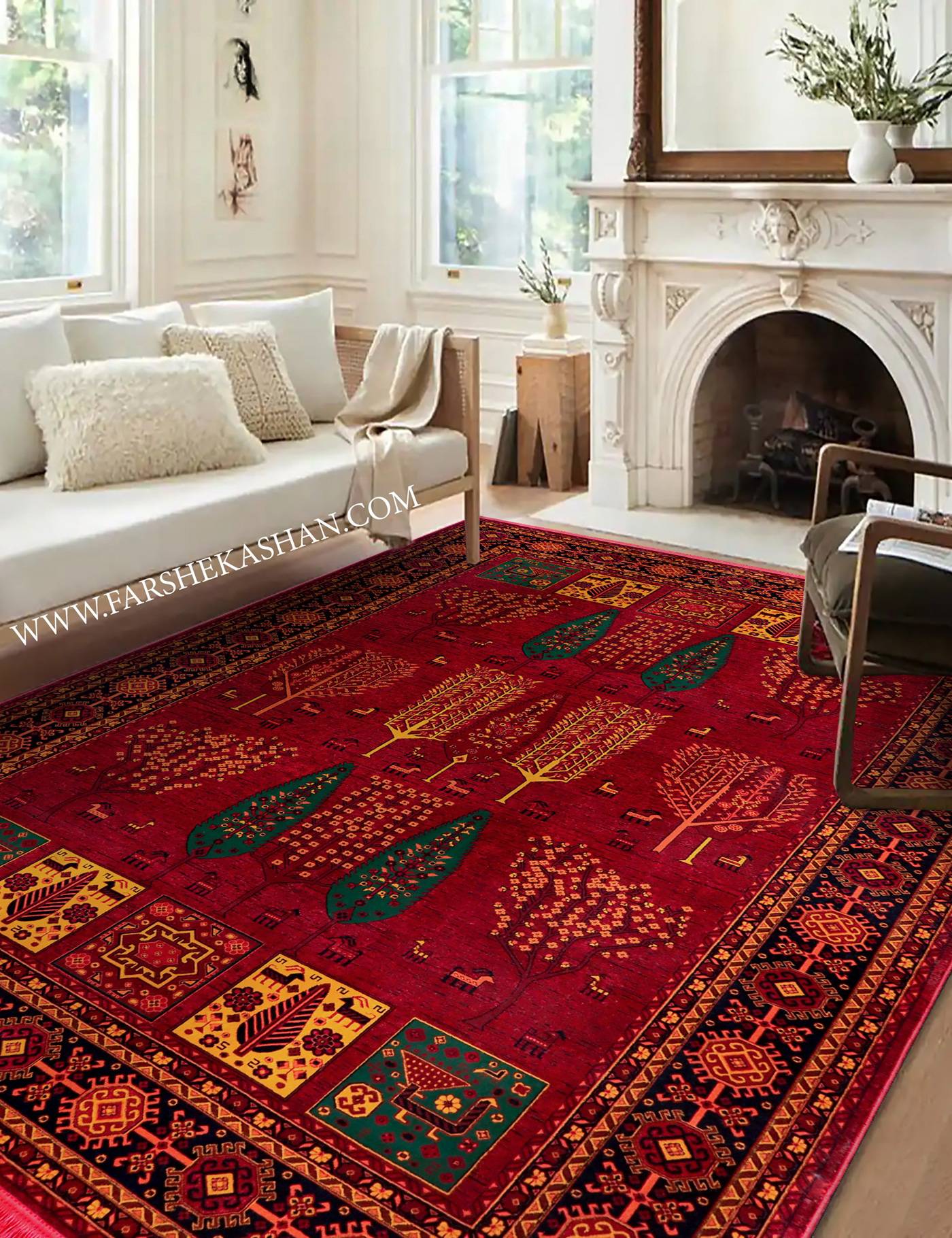 مشخصات فنی و جنس فرش طرح پاسیو – فرش کاشان فرش طرح پاسیو از تولیدات برجسته فرش کاشان ۷۰۰ شانه واقعی است که بافت آن با دستگاههای پیشرفته HCP طراحی شده و از نخ صد درصد اکریلیک هیت ست شده تشکیل شده است. این نوع نخ، مقاومت بالایی در برابر حرارت، رطوبت و کوبیدگی دارد و پرزدهی آن به حداقل رسیده است. بافت متراکم و منظم این فرش باعث شده تا نقشه های ظریف و جزئیات هنری با وضوح بالا نمایش داده شوند. ابعاد استاندارد آن شامل ۶، ۹ و ۱۲ متری و شامل انواع ابعاد کناره است و پشت فرش بافتی منظم و بدون موج دارد که نشان از کیفیت بالای تولید در کارخانه فرش کاشان است. طرح پاسیو با الهام از نقوش درختی و حیوانات بومی، تلفیقی از سبک عشایری و هندسی را به نمایش می گذارد. رنگ زمینه قرمز لاکی با ترکیب سبز، زرد و مشکی، جلوهای گرم و اصیل به آن بخشیده است. این فرش مناسب فضاهای پرتردد بوده و دوام بالایی در برابر فشار و رفت وآمد دارد. فرش کاشان با ارائه این طرح، بار دیگر توانایی خود را در تلفیق سنت و تکنولوژی اثبات کرده است.