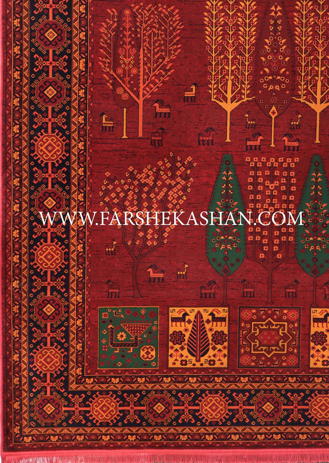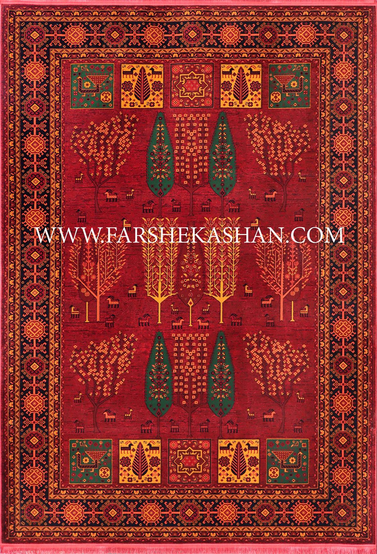 تحلیل سبک و نقشه فرش پاسیو ، تلفیق طبیعت و هندسه در فرش کاشان طرح پاسیو یکی از نمونه های خاص فرش کاشان است که با نگاهی نو به نقوش سنتی، سبک بصری متفاوتی را ارائه می دهد. در مرکز فرش، درختان بلند و متقارن با برگهای هندسی دیده می شوند که نمادی از طبیعت و پایداری هستند. اطراف این درختان با حیواناتی مانند بز و آهو تزئین شده که یادآور زندگی روستایی و عشایری ایران است. تقارن کامل در چیدمان عناصر، حس نظم و آرامش را القا می کند و ترکیب رنگهای گرم با خطوط هندسی، به آن جلوه ای مدرن و در عین حال سنتی بخشیده است. حاشیه فرش با نقوش تکرارشونده هندسی طراحی شده که به خوبی قاب بندی طرح مرکزی را انجام میدهد. این سبک طراحی، نه کاملاً ترنج دار است و نه کاملاً خشتی، بلکه ترکیبی از هر دو با رویکردی مینیمال تر است. فرش کاشان با این نقشه، توانسته است مخاطبانی را جذب کند که به دنبال طرح هایی با هویت ایرانی اما با چیدمان نوین هستند. طرح پاسیو، نه تنها یک فرش تزئینی بلکه یک اثر هنری قابل تأمل است که در هر نگاه، جزئیات تازه ای را آشکار میسازد.