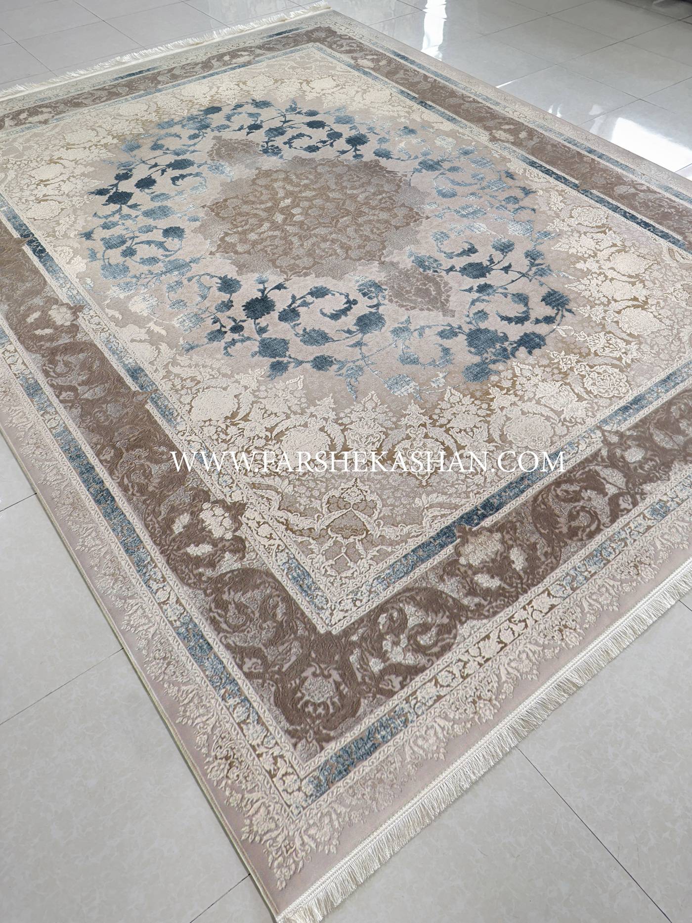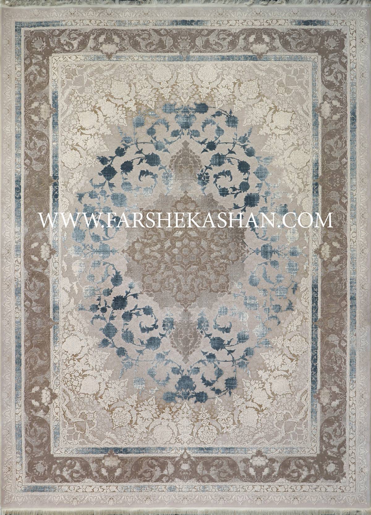 فرش کاشان طرح ۳۱۴۵ از جمله نقشههایی است که به زیبایی میان اصالت کلاسیک و درک مدرن از نقش و رنگ تعادل برقرار کرده است. زمینه ای آرام با ترنج مرکزی منظم و گلهای اسلیمی برجسته، ساختاری منسجم و چشم نواز به آن بخشیده است. در نگاه نخست، هماهنگی میان تناژ قهوه ای روشن، بژ و آبی خاکستری حالوهوای آرامش بخشی ایجاد می کند. حاشیه ها با گلهای پیچکی و برگهای برجسته، عمق بصری خاصی دارند که حس سه بعدی بودن طرح را تقویت می کند. نقوش ختایی و ترنج میانی در این فرش با چیدمانی دقیق، از سنت دیرینه فرش بافی کاشان الهام گرفته اند اما با نگاهی نو و ساده سازی شده ارائه شدهاند تا پاسخ گوی سلیقه دکوراسیونهای امروزی باشند. این ترکیب از اصالت ایرانی و مدرن گرایی، طرح ۳۱۴۵ را به گزینه ای محبوب در میان مجموعه های فاخر فرش کاشان تبدیل کرده است.