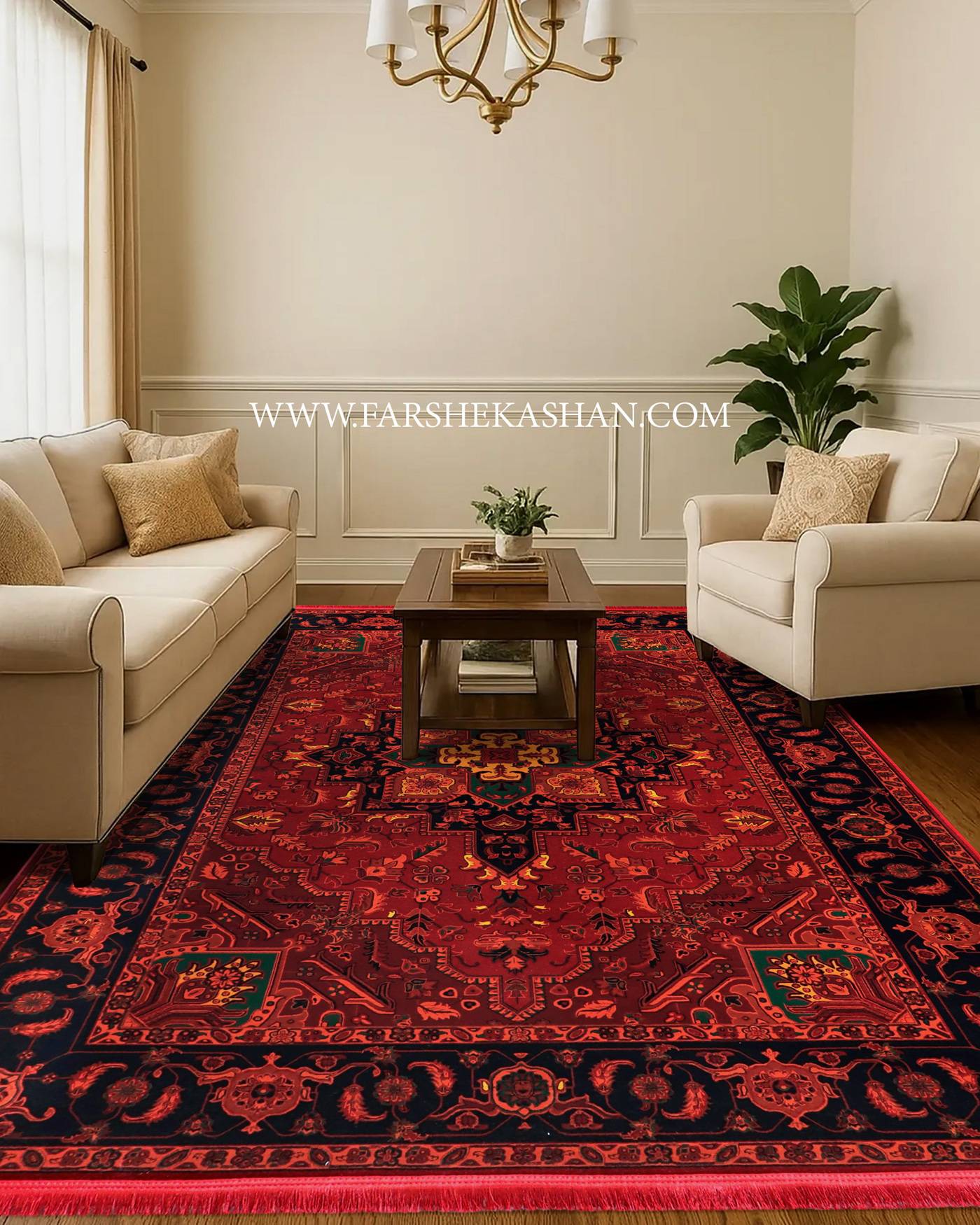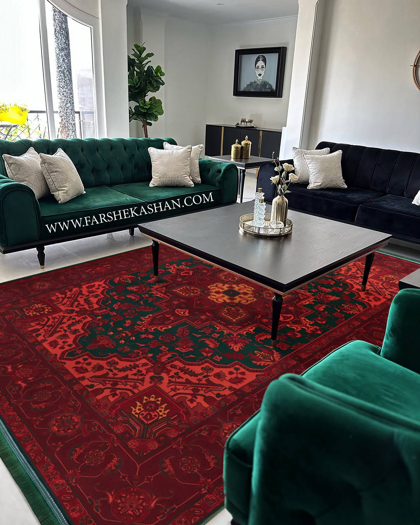 فرش کاشان طرح لونا در دکوراسیون داخلی به خاطر سه رنگ زمینه سرمه ای، سبز و لاکی، امکان ست کردن بسیار گسترده ای دارد و هر رنگ یک سبک متفاوت میسازد. نسخه سرمه ای برای فضاهای لوکس تر مناسب است؛ خصوصاً کنار مبلمان کرم، قهوهای سوخته یا خاکستری، جلوه ای رسمی و پخته ایجاد می کند. رنگ لاکی در این طرح جنبه جسورانه تری دارد و برای کسانی مناسب است که می خواهند نقطه کانونی قدرتمند در پذیرایی داشته باشند؛ بهترین هماهنگی آن کنار مبلمان طوسی روشن، بژ یا سبز یشمی دیده می شود. رنگ سبز لونا هم فضای خانه را متفاوت و خاص می کند و بیشتر برای دکوراسیونهای طبیعت محور، مدرن و فضاهای با نور کافی پیشنهاد می شود؛ این رنگ در کنار چوبهای روشن یا مبلمان نسکافهای جلوه بی نظیری دارد. به خاطر نقوش هندسی، سنتی و حاشیه پهنی که طرح دارد، لونا در فضاهای بزرگ بهتر می نشیند، اما برای هالهای متوسط هم اگر چیدمان خلوت باشد، ظرافتش کاملاً نمایان می شود. با توجه به تنالیته مشابه بین سه رنگ تولیدی، کسانی که می خواهند چند فرش هماهنگ در یک خانه بچینند می توانند از ترکیب سرمهای در پذیرایی، سبز در نشیمن و لاکی در ورودی استفاده کنند تا یک هارمونی چشمگیر و بدون تکرار ایجاد شود.