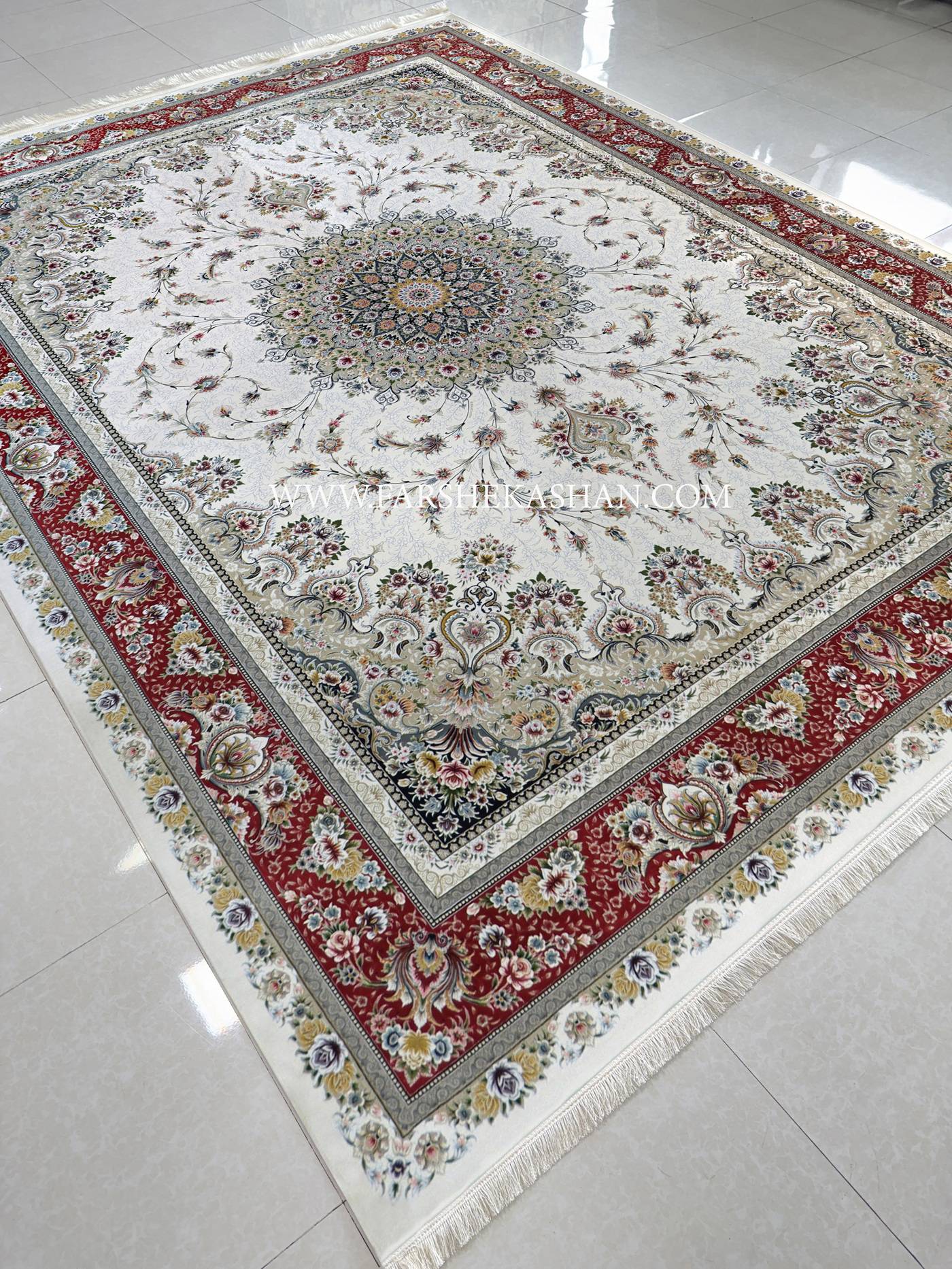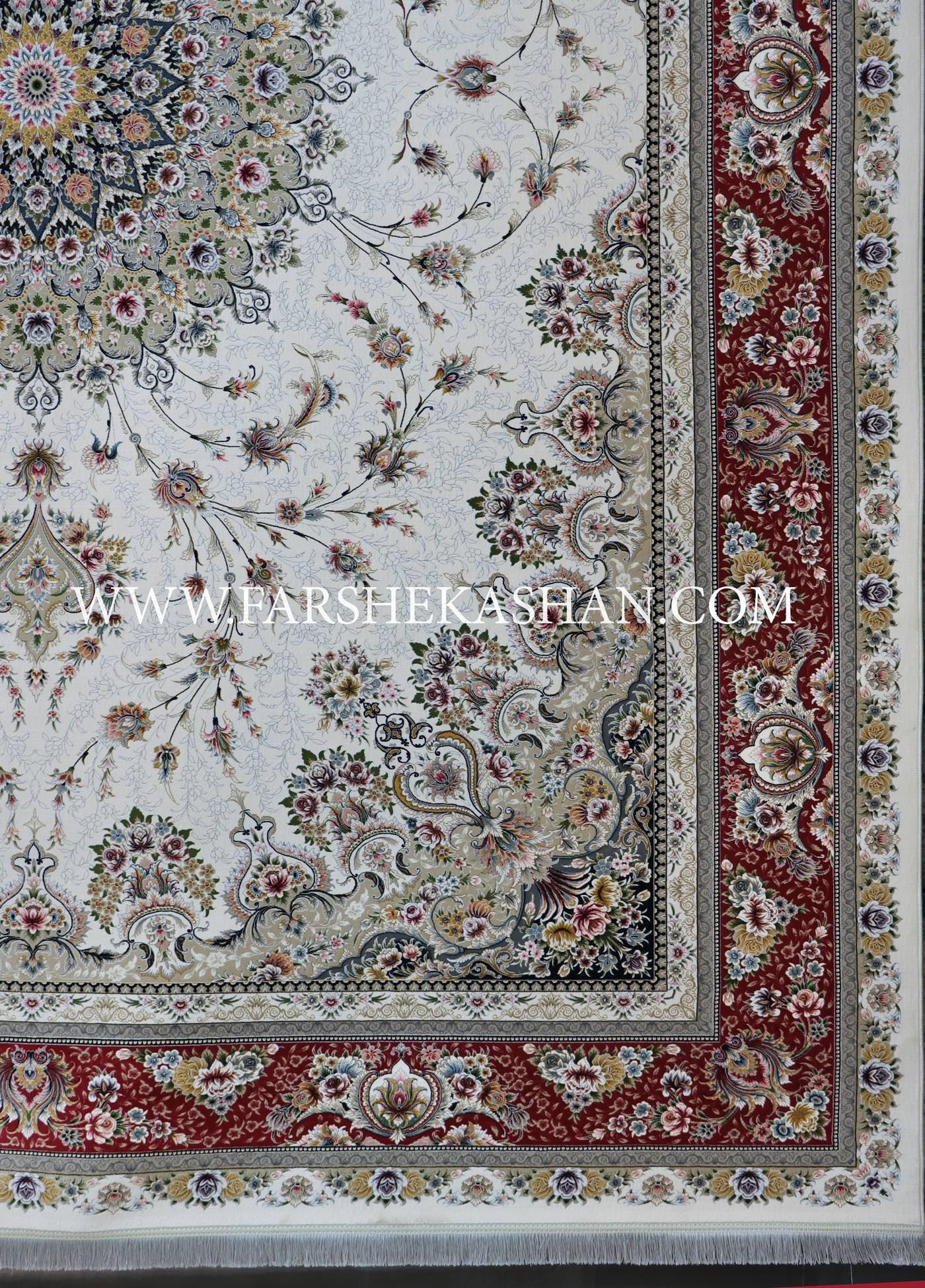 فرش بردیا از نظر سبک طراحی در رده نقوش کلاسیک، اصیل قرار میگیرد، اما در اجرا به شدت ظریف تر و منسجم تر از نمونههای مشابه دیده میشود. ترنج مرکزی این فرش، با ساختاری ستاره ای و چند لایه، مرکز میدان را تبدیل به نقطه تمرکز بصری قدرتمندی کرده که بلافاصله نگاه را جذب می کند. دور تا دور ترنج، شاخههای باریک اسلیمی و گلهای خرد خوش چین قرار گرفته اند؛ طوری که هم تراکم بصری ایجاد می کنند و هم اجازه می دهند زمینه روشن فرش، تنفس طرح را حفظ کند. حاشیههای فرش بردیا با رنگ لاکی، زرشکی و گل دستههای منظم سنتی، وزن طرح را کامل می کنند و در مقابلِ لطافت زمینه، یک چارچوب قوی پدید می آورند. در لایههای نزدیک به متن، قابهای چندخطی با ترکیب مشکی، صدفی و نخودی، نقشها را از هم تفکیک کرده و به طرح عمق می بخشند. طراحی گلهای شاه پسندی، بوتههای کوتاه و ریزنقشهای متقارن کاملا نشان می دهد که این فرش با رویکرد کلاسیک فاخر ساخته شده؛ نه شلوغ است و نه ساده، بلکه در نقطه تعادل میان هویت ایرانی و ظرافت مدرن قرار دارد. ترکیب این جزئیات باعث می شود فرش بردیا حتی در نگاه نزدیک هم غنی، منظم و خیره کننده جلوه کند و در میان فرشهای هم رده، امضای بصری خاص خودش را داشته باشد.