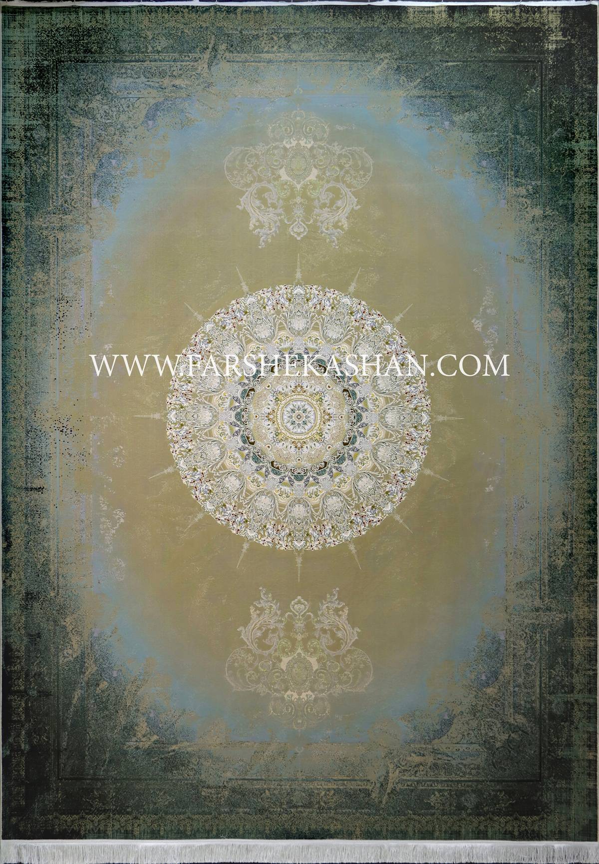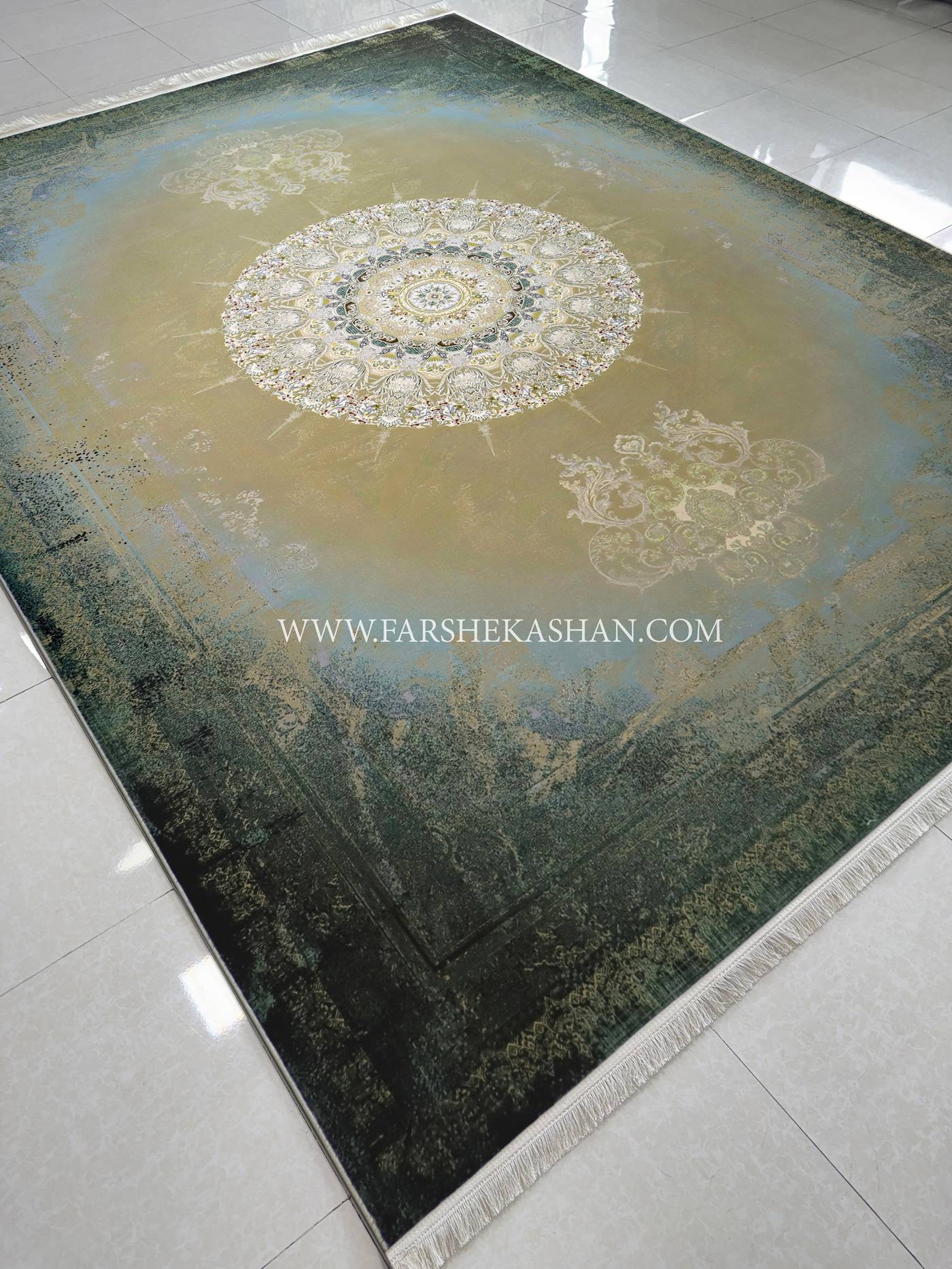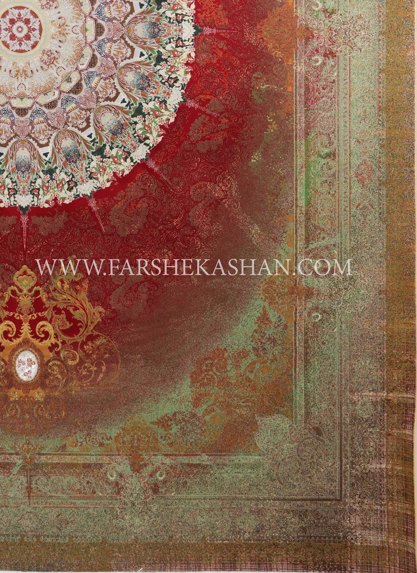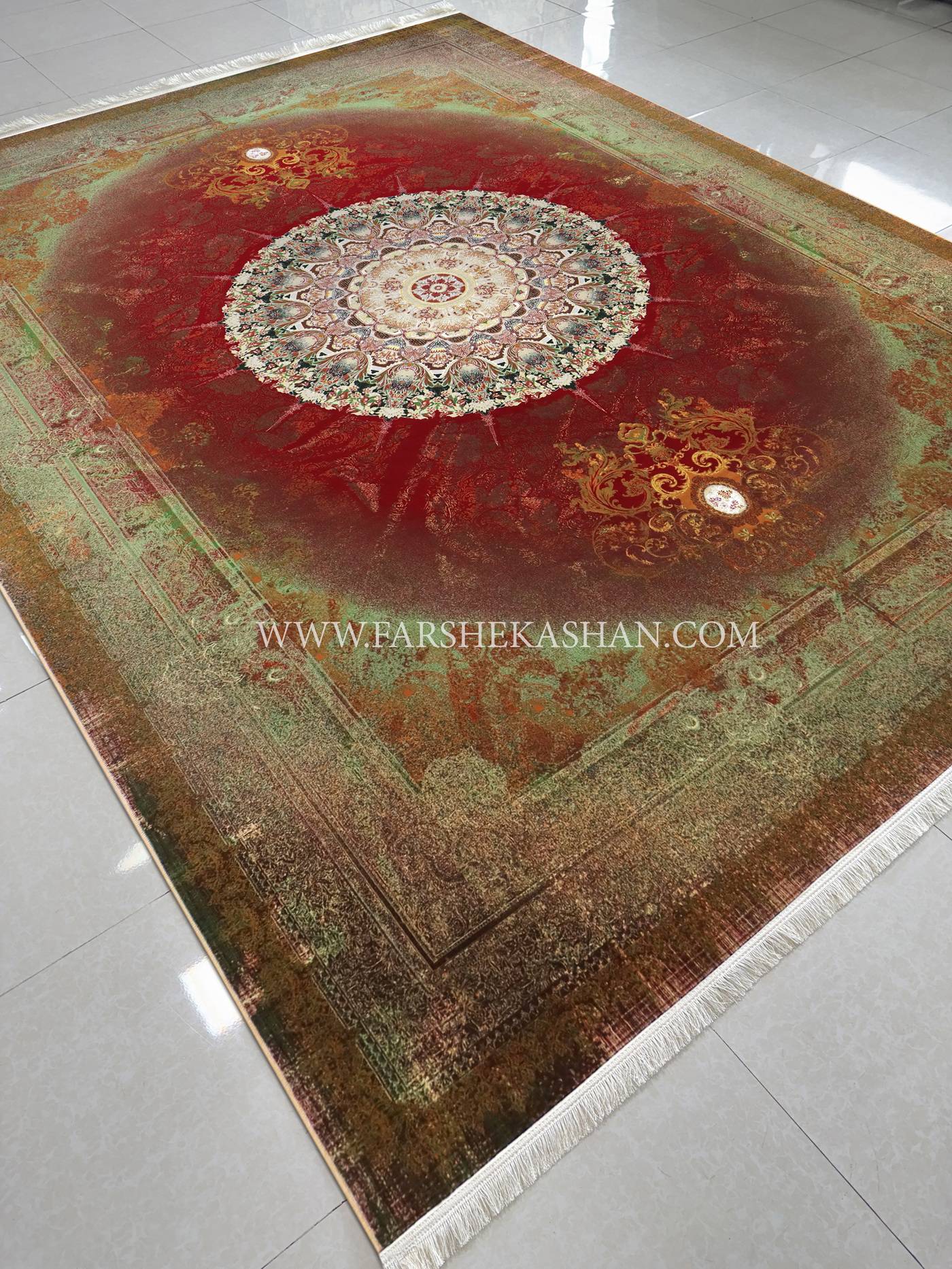 طرح برمودا از آن مدل هایی است که طراحش عمدا سراغ یک ترکیب هندسی، محوشده رفته تا چشم بیننده در مرکز فرش گیر کند و بعد آرام آرام در هالههای سبز و لاکی پخش شود. ساختار نقشه بر پایه یک ترنج چندلایه است اما نه به صورت کلاسیک؛ لایهها انگار با قلم مو محو شدهاند و مرزها عمدا خورد و نرم اجرا شده تا جلوهای شبیه فرشهای کهنه نما ولی با نقشه مدرن ایجاد کند. اطراف ترنج، ریزنقشهای اسلیمی و بوته ای با تراکم بالا دیده میشود که روی زمینه سبز جلوهای مه آلود و روی رنگ لاکی جلوه ای گرم تر و سلطنتی تر پیدا می کند. حاشیه ها حالت فرسایشی دارند اما این فرسایش مصنوعی نیست؛ کاملاً کنترل شده است تا فرش برمودا را از ساده بودن نجات دهد و تبدیلش کند به طرحی که همان اول هویت خودش را نشان بدهد. این سبک طراحی نه صرفاً کلاسیک است و نه کاملاً مدرن؛ یک حالت نیمهکلاسیک هنری دارد که برای مخاطب جدی تر فرش جذاب میشود.