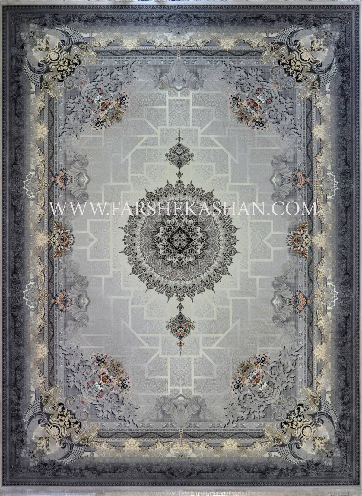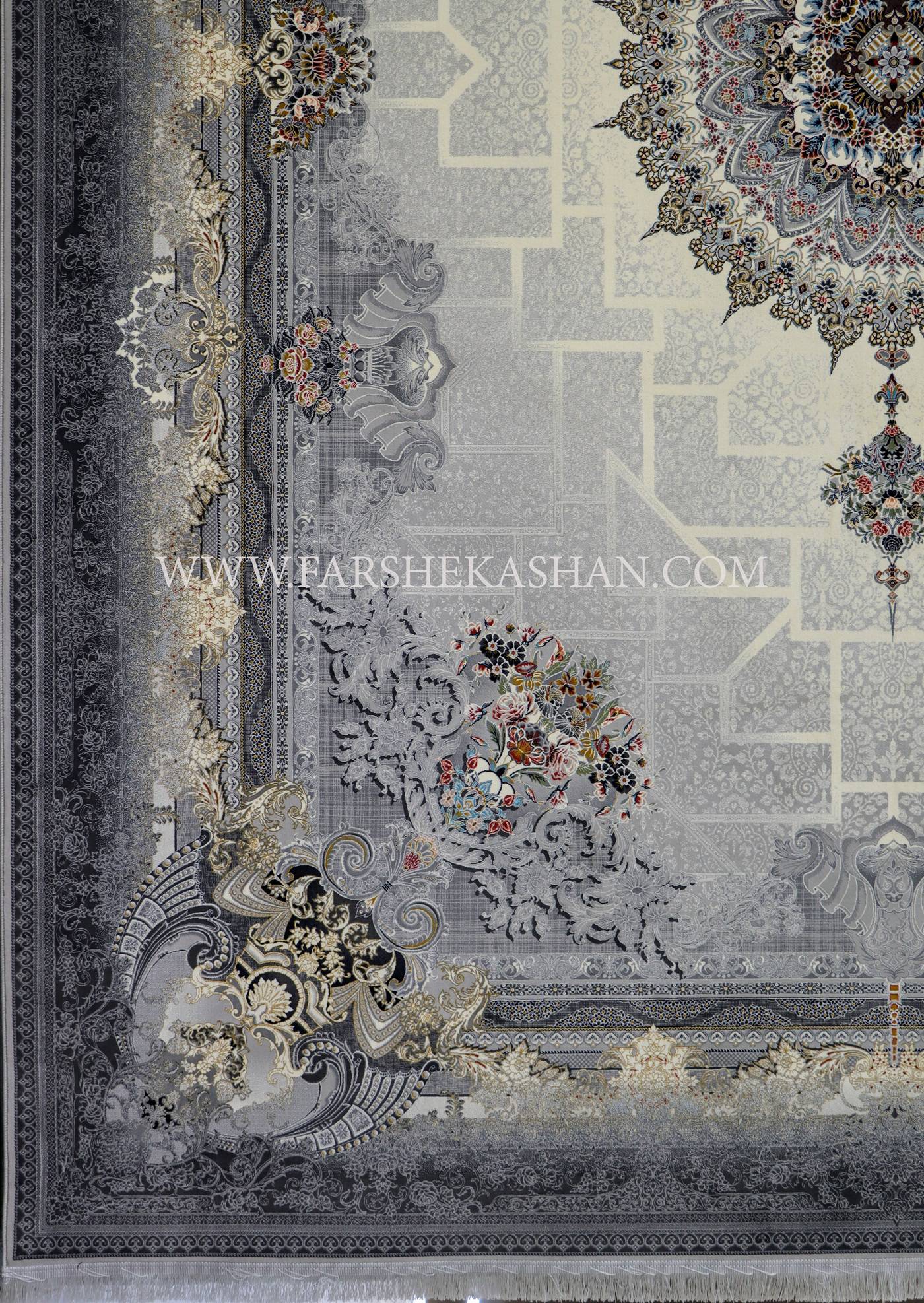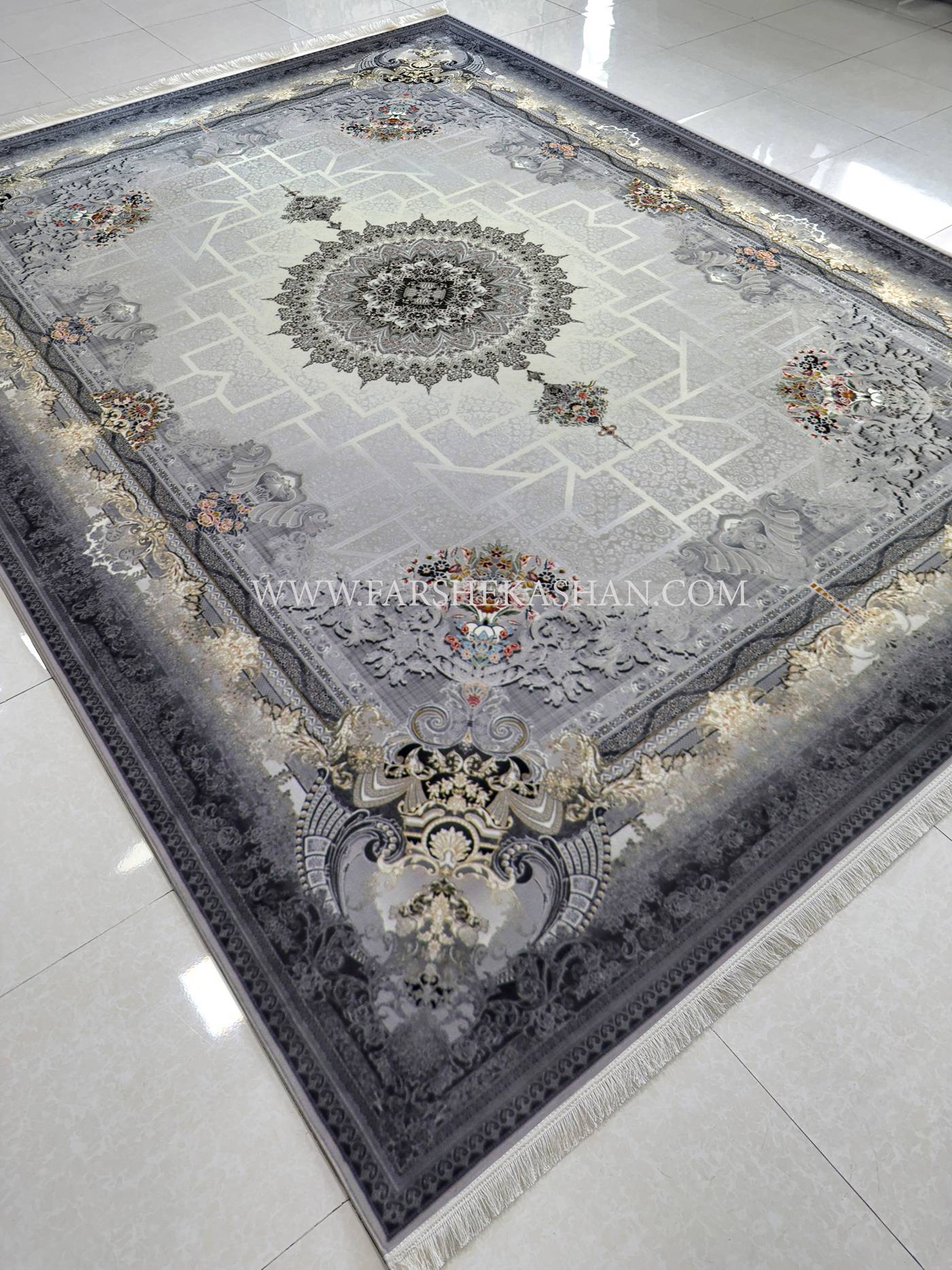 این فرش در شانه 1200 و تراکم 3600 بافته شده که به معنای ریزبافتی بالا و وضوح دقیق جزئیات نقشه است. چنین تراکمی اجازه می دهد خطوط هندسی پس زمینه و ظرافت گلهای کنجی بدون شکستگی دیده شوند. الیاف معمولاً از نوع اکریلیک هیت ست شده با کیفیت بالا هستند که در کنار لطافت، ایستایی و مقاومت مناسبی در برابر کوبیدگی ایجاد می کنند. سطح فرش حالت مخملی و منظم دارد و به دلیل فشردگی گرهها، طرحها عمق بیشتری نشان می دهند. این تراکم باعث میشود ترنج مرکزی برجسته تر به نظر برسد و سایه روشنهای زمینه سیلور و طوسی تیره طبیعی تر دیده شوند. ثبات رنگ در طیفهای خنثی مانند سیلور، دودی و طوسی تیره اهمیت زیادی دارد و در این ساختار بافت، تغییر تناژ در طول زمان به حداقل میرسد. برای فضاهای پرتردد نیز انتخابی منطقی محسوب میشود.