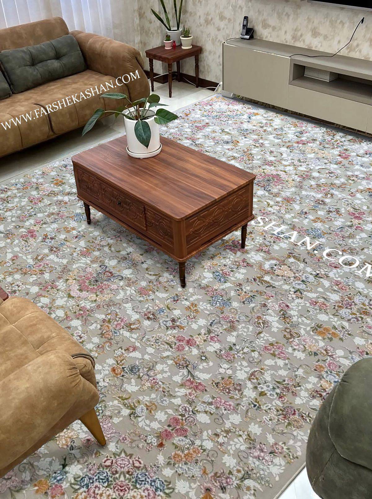 فرش رزگل زمینه نقرهای و طوسی - شکوه سادگی و لطافت